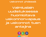 Valmiuslain uudistuksessa huomioitava uskonnonvapaus ja uskonnot tuen antajina