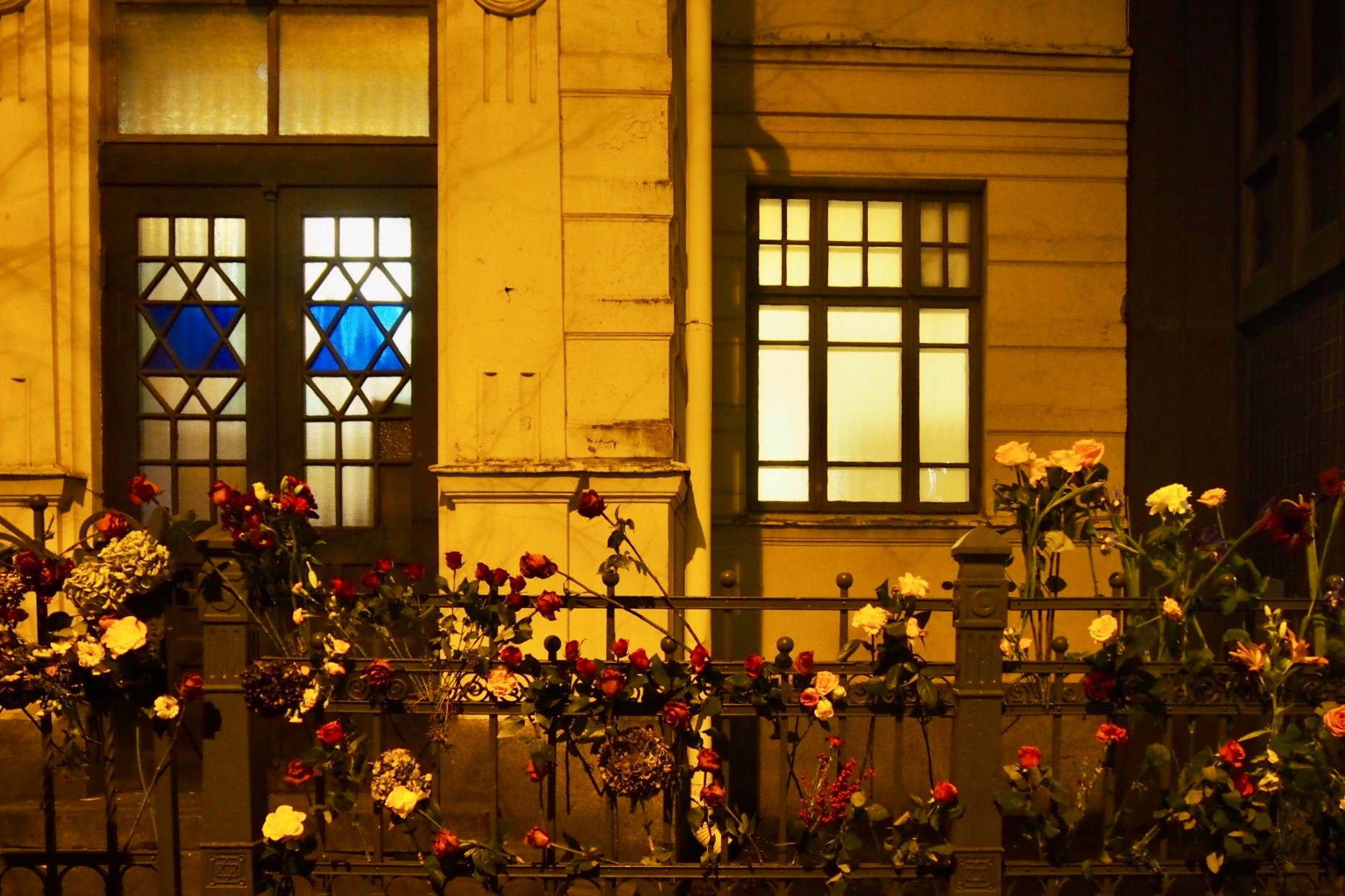 Pimeässä marraskuun illassa synagogan aitaa koristaneet kukat olivat kaunis symboli juuri tästä.