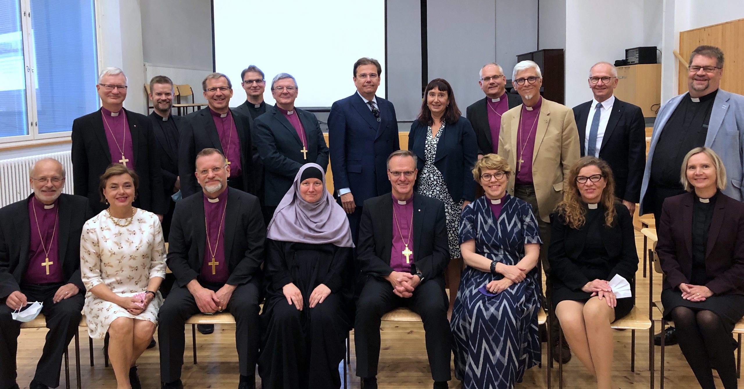 Piispat kommentoivat aktiivisesti kuultuja aiheita. Tilaisuus päättyi synagogavierailuun.